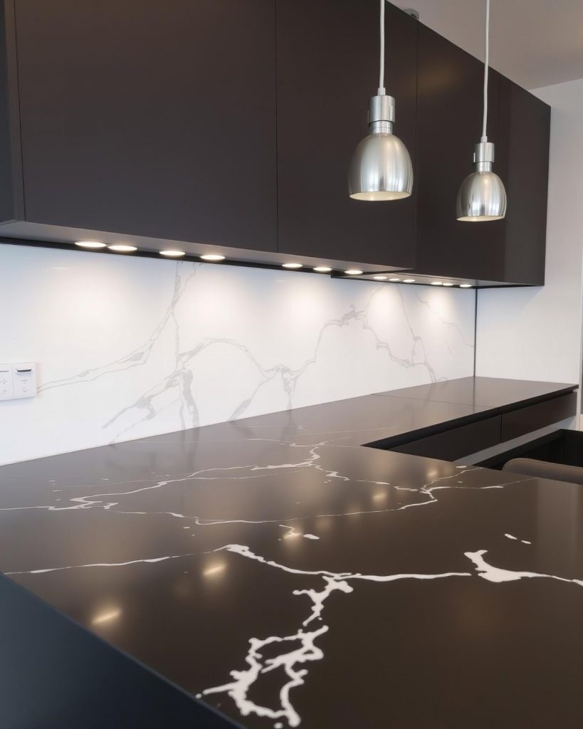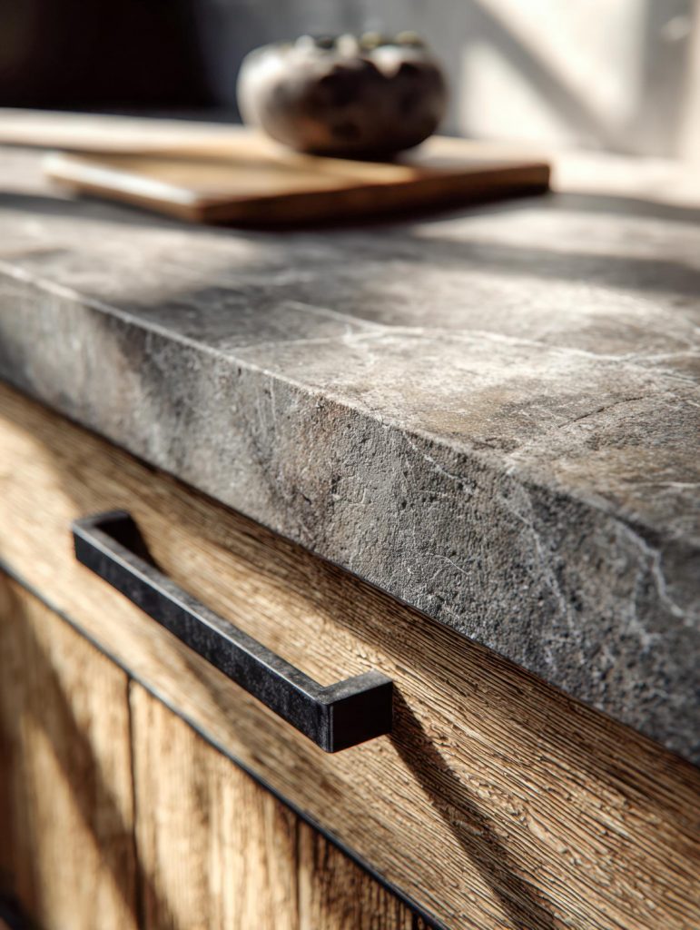 Die perfekte Verbindung aus natürlicher Schönheit und technischer Stärke. Quarzit ist hart, widerstandsfähig und ideal für stark beanspruchte Küchenarbeitsflächen.
